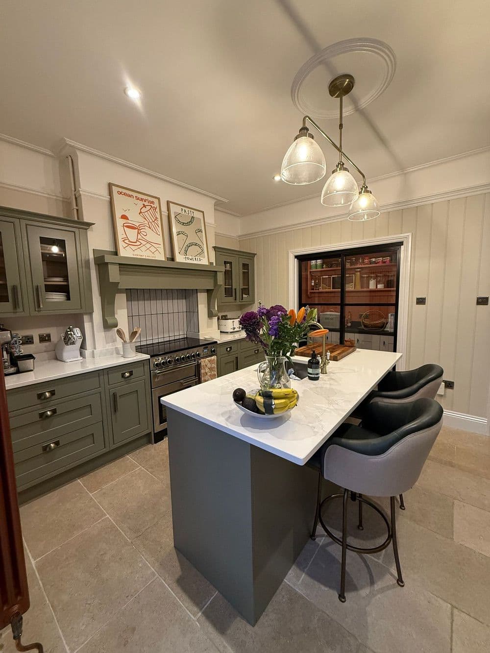 The centrepiece of the renovation is a beautifully crafted, high-end kitchen. Designed with both style and functionality in mind, it features bespoke cabinetry, elegant worktops, statement lighting, and a generous island ideal for cooking, dining, and entertaining. Every detail was carefully considered to create a space that feels both sophisticated and welcoming.